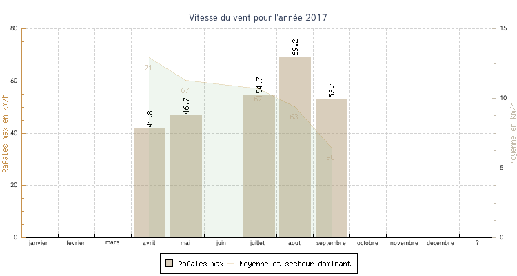 | avril | 24.3 °C | 25.5 °C | 31.2 °C | 30.8 °C | 27.7 °C | 12.9 km/h | 41.8 km/h | 71 |